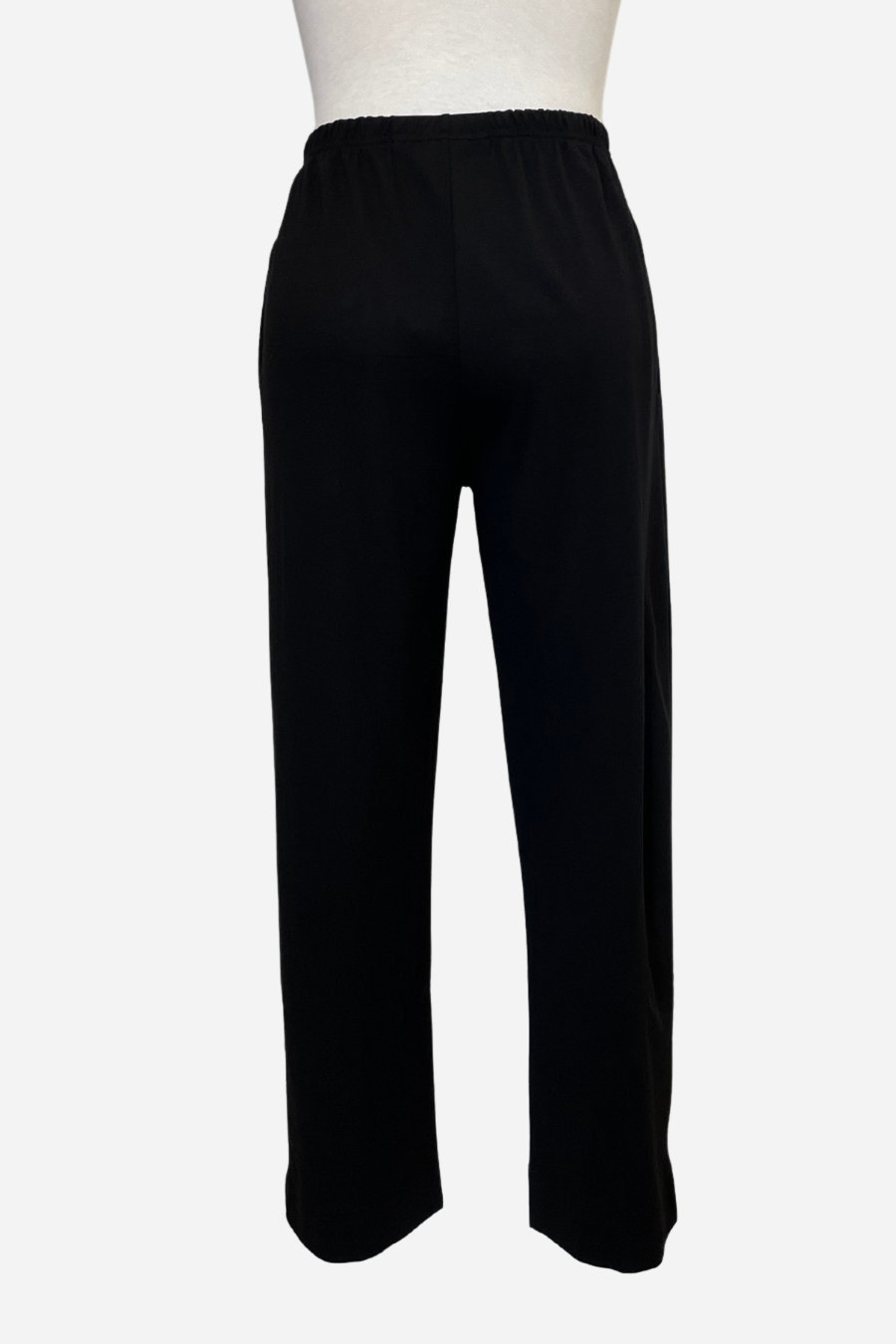 A straight leg ankle length pant (approx. 25") that is sporty and comfy in a modal ponti. Featuring an elastic waist, and wide finished hem at ankle, and pockets! An easy to wear, casual pant.