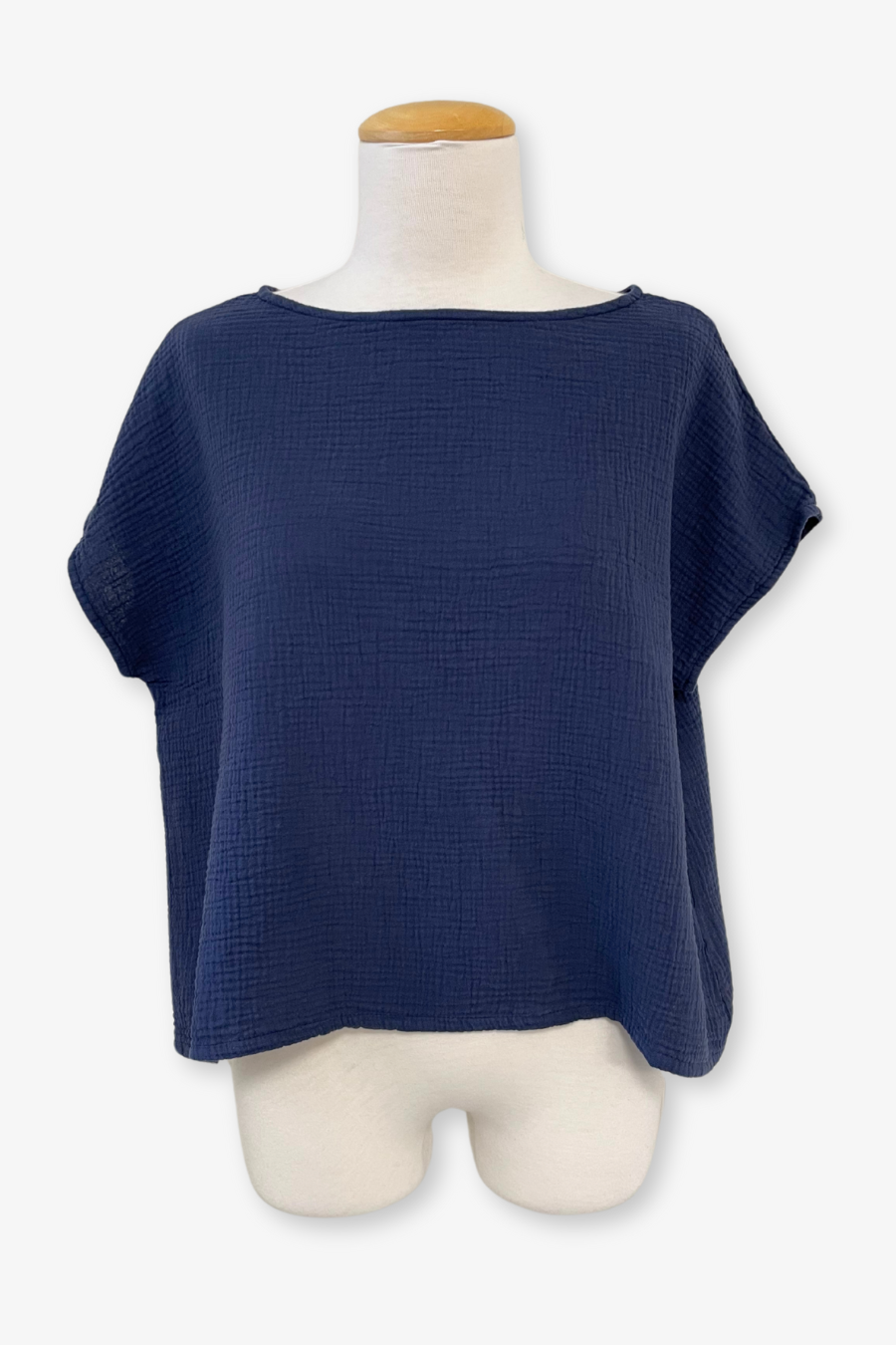 The Bess shirt is a boxy, loose fitting top featuring cap sleeves and a bateau neckline. The straight hemline hits about mid-hip on most. A great addition and building block for your wardrobe.