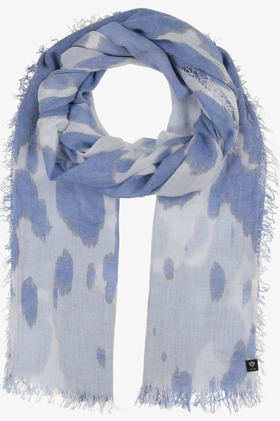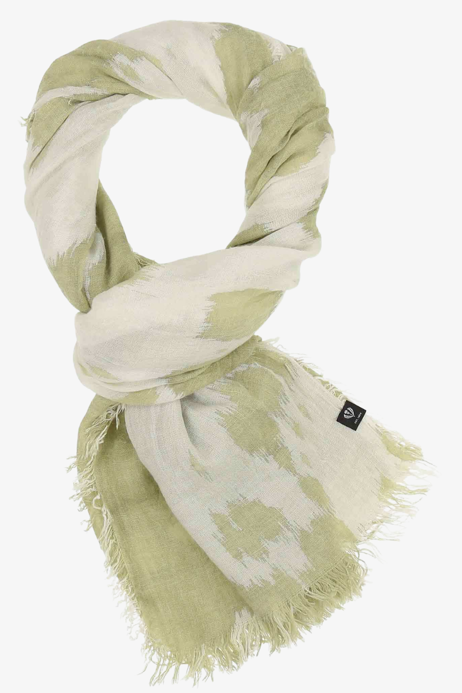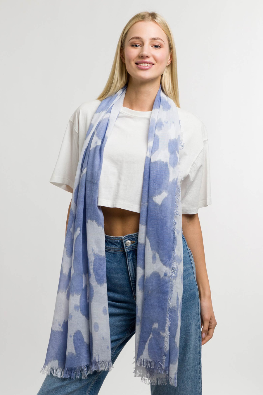 This airy polyester viscose scarf is an essential style piece that is comfortable to wear, and provides lightweight warmth without the bulkiness. The bleached out effect gives a unique distressed look, but is subtle enough to work as an elevated alternative to a solid wrap. This looks fantastic with a everyday-casual outfit, but can also be combined with an elegant blazer or dress to create a chic business look.