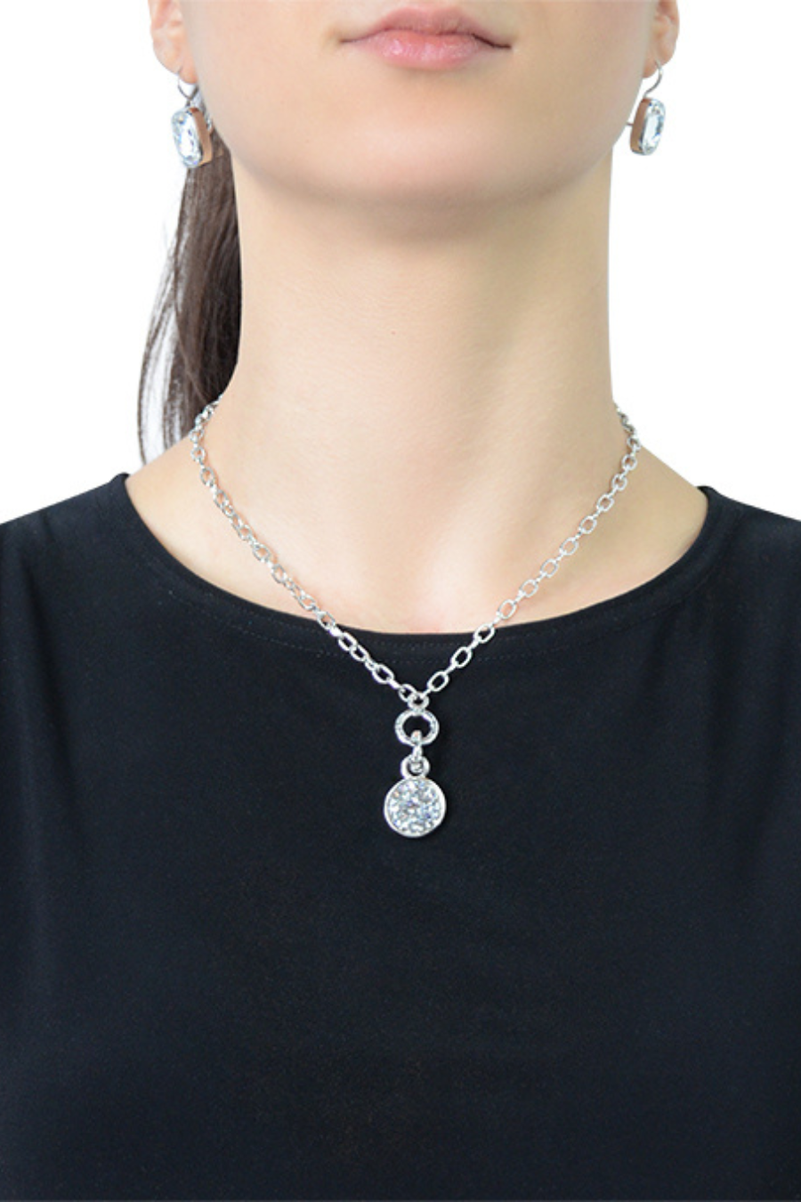 Great for everyday wear our Carly Small Round Crystal Rock Pendant gives a fun look to any delicate chain.