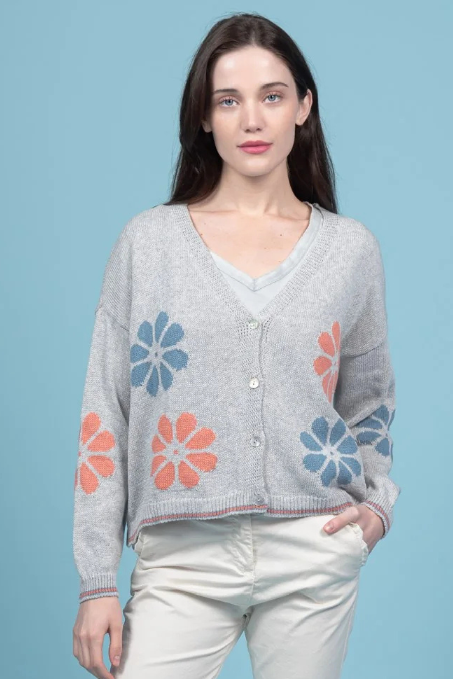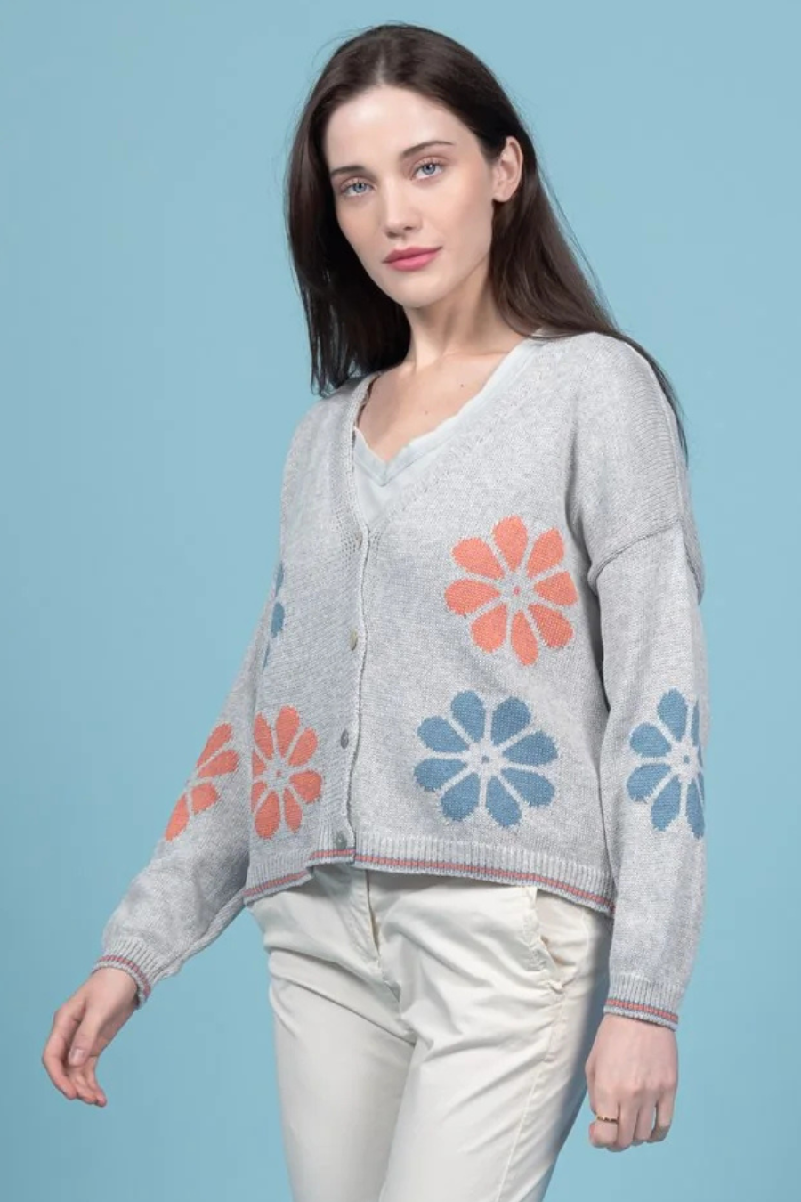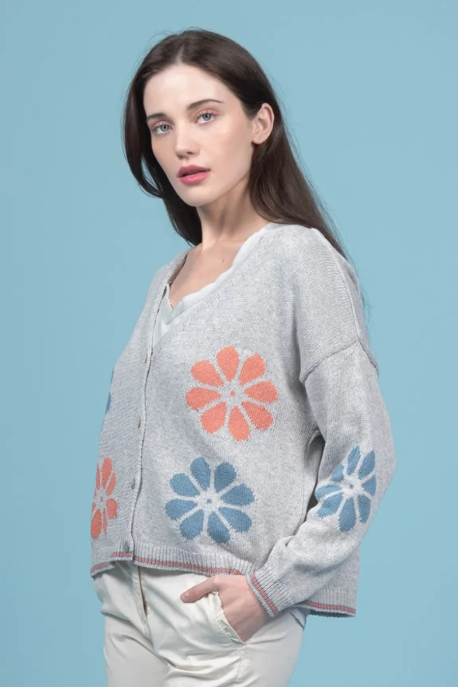 Crop Flower Cotton Cardigan