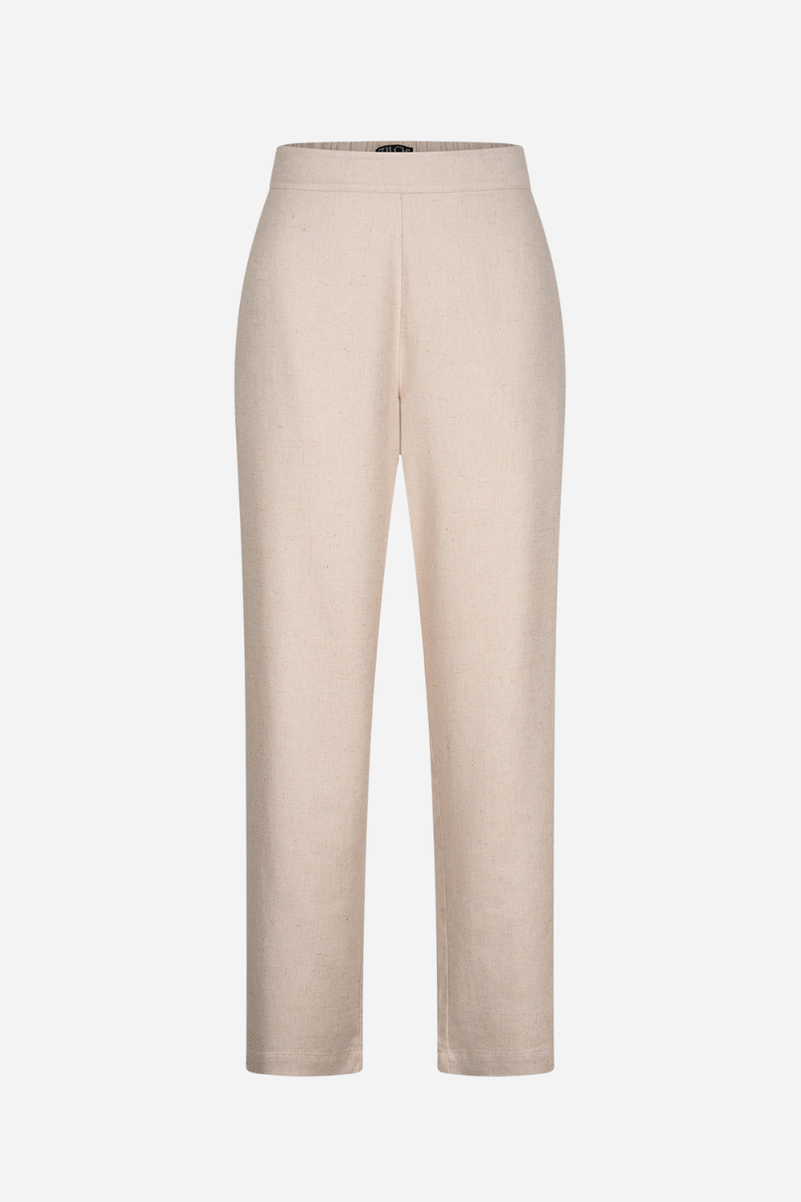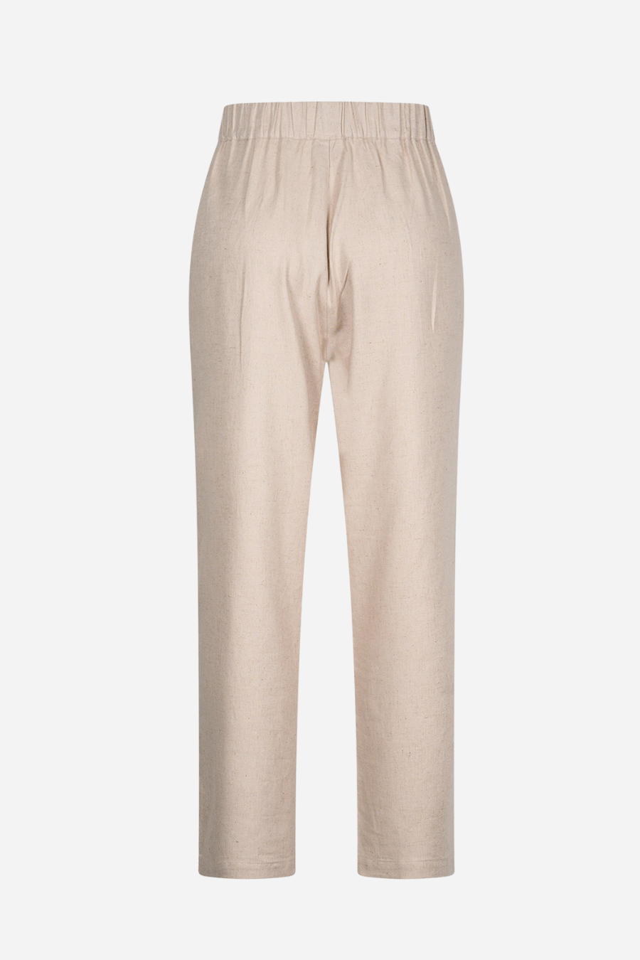 These pants have straight legs, side pockets and elastic in the back of the waistband.