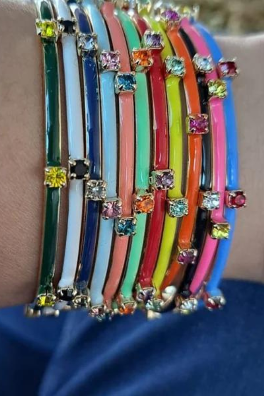 The Everly Cuff is the perfect statement piece to light up any look. Crafted with high quality brass and gold plating, this classic accessory is adorned with sparkling crystals, hand-painted enamel, and made with love in Canada. Spruce up any outfit with the Everly Cuff and say goodbye to dull style!