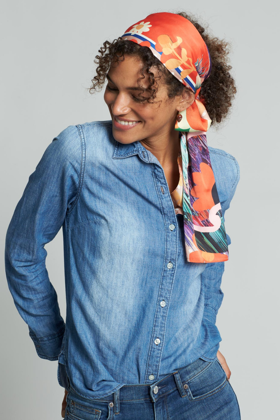The boldest flowers cascade down the length of this oblong scarf. A beautiful statement for causal wear, the design is finished with a machine-rolled hem for lasting quality.