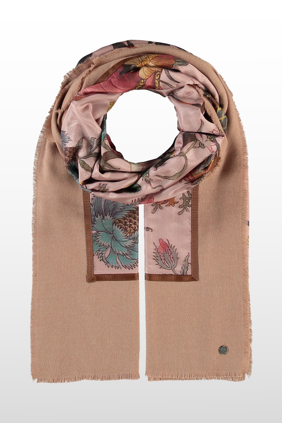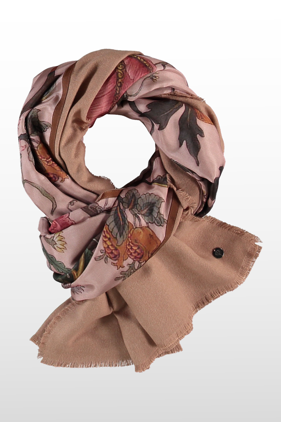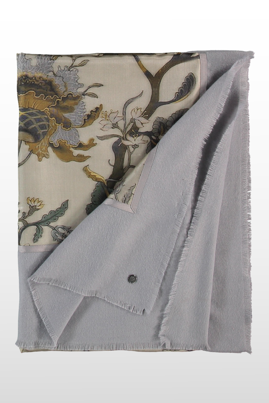 Gift this fashionable bouquet that will last a lifetime. This construction of this wrap scarf is something to see in person and will have people asking any time you wear it. An elegant floral silk blend scarf sewn to a super soft wrap, creating a chic double layer patchwork style pashmina. A great gift idea for that special someone. The best gifts come from the heart. And FRAAS.