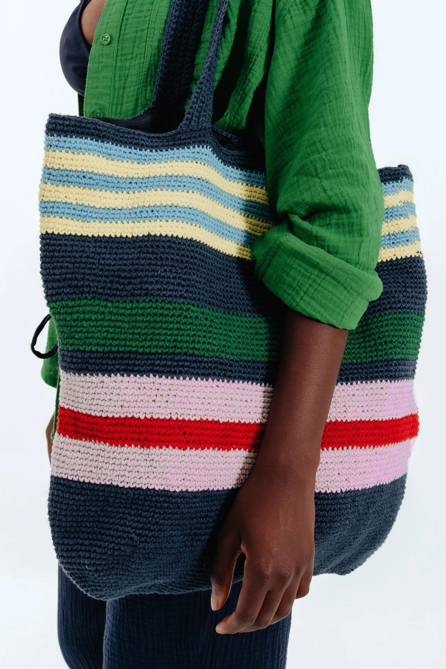 Crochet all day with the colourful striped bag that's perfect for a trip to the beach or crosstown adventure.