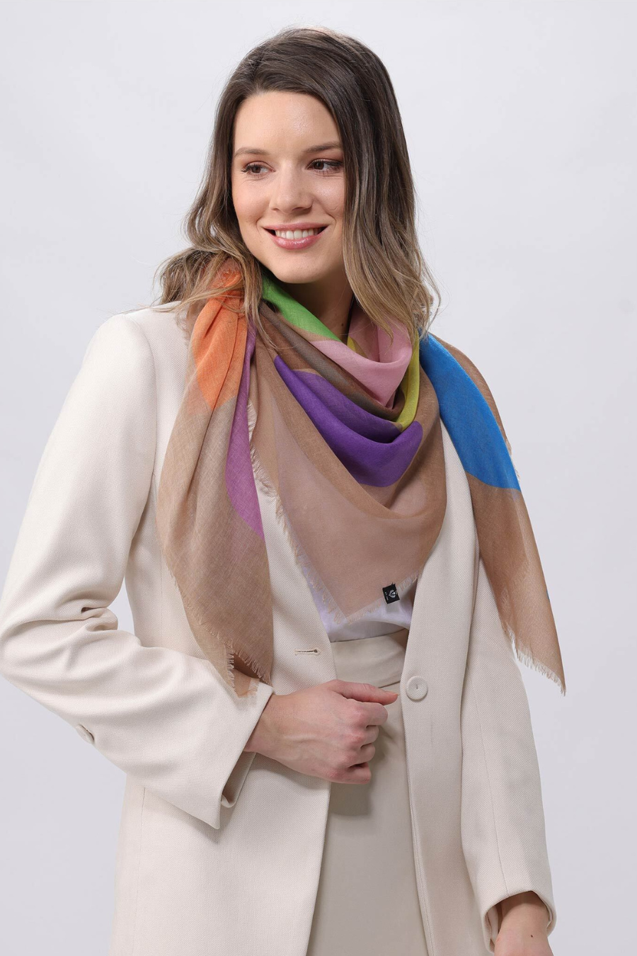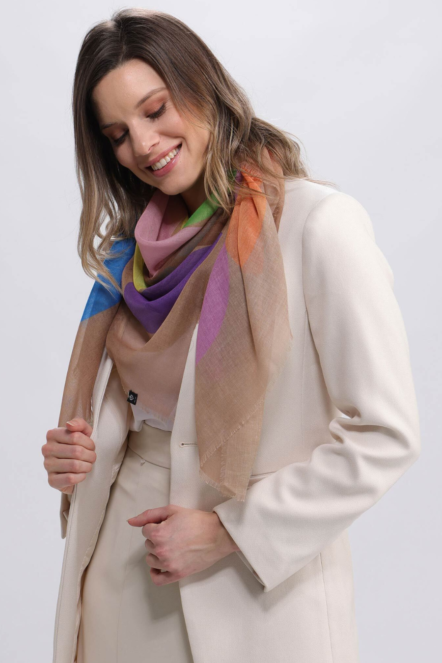 Fashionable & Sustainable! The fibers in this fun geometric printed scarf have been recycled from plastic bottles. We have also pledged to make every item in our Sustainability Edition completely CO2 neutral through a carbon offset project protecting one of the oldest national parks in Africa. Try this oversized graphic square tied in a classic bandana scarf shape, thrown over your shoulders, or let it hang down to show the design and colours. Pairs well with your favourite jeans, fashion dresses or work blazer. A fabulous fashion accessory that is Good for you. Good for the planet.
