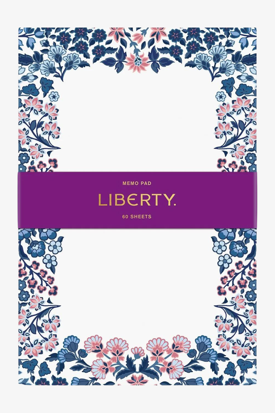 Liberty London is known for its floral and graphic prints and the offering of innovative and eclectic designs. The Liberty Tanjore Gardens Memo Pad features a classic colourful floral pattern border around unlined white paper for writing notes.