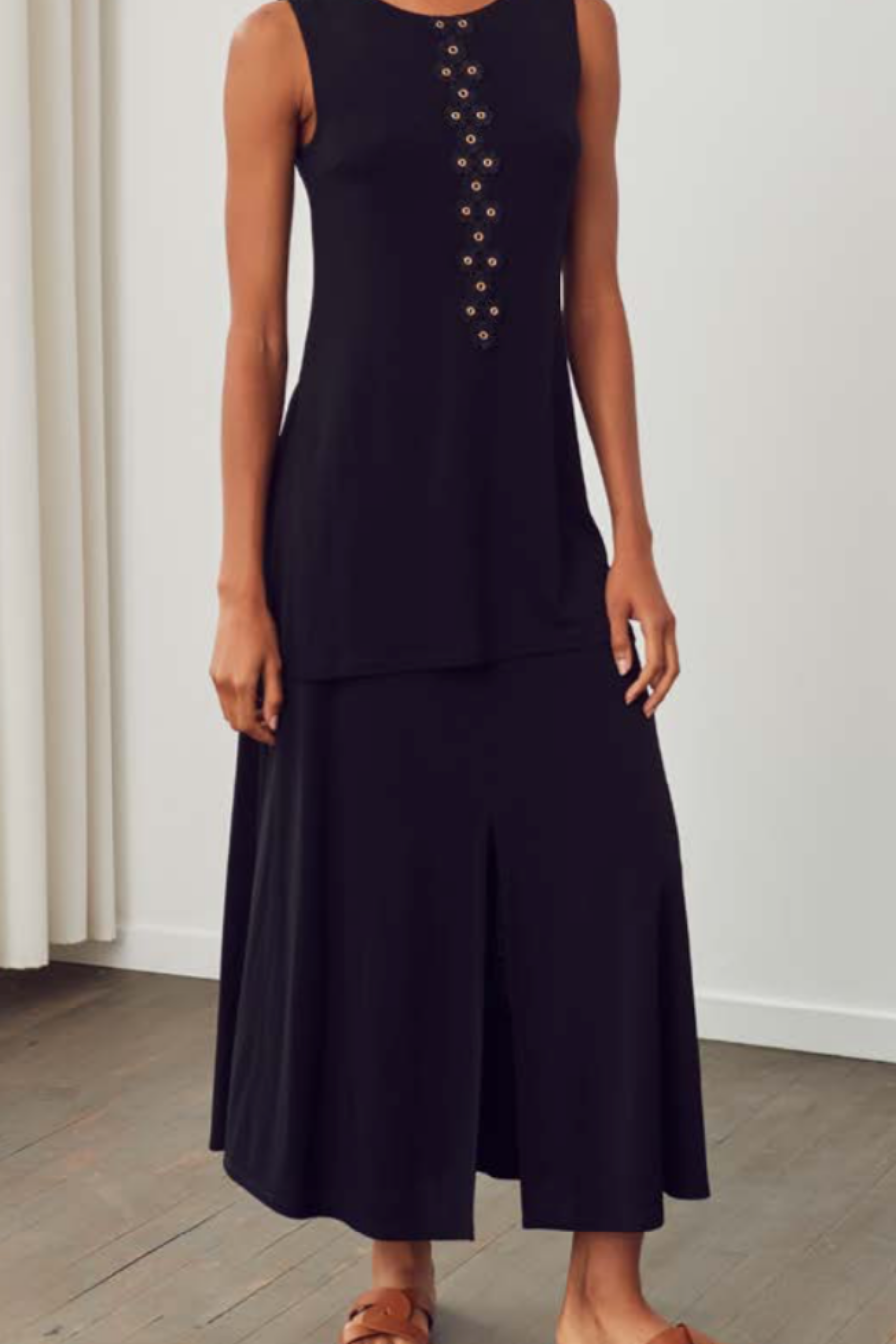 Maxi skirt, slight flare, 17" centre front slit, length 38"
