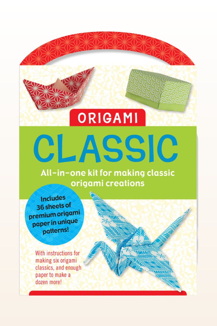 Origami Classic kit includes illustrated instructions for making six delightful creations, including a Boat, a Box, a classic Crane, a Flower, a Fortune Teller, and a Pinwheel.