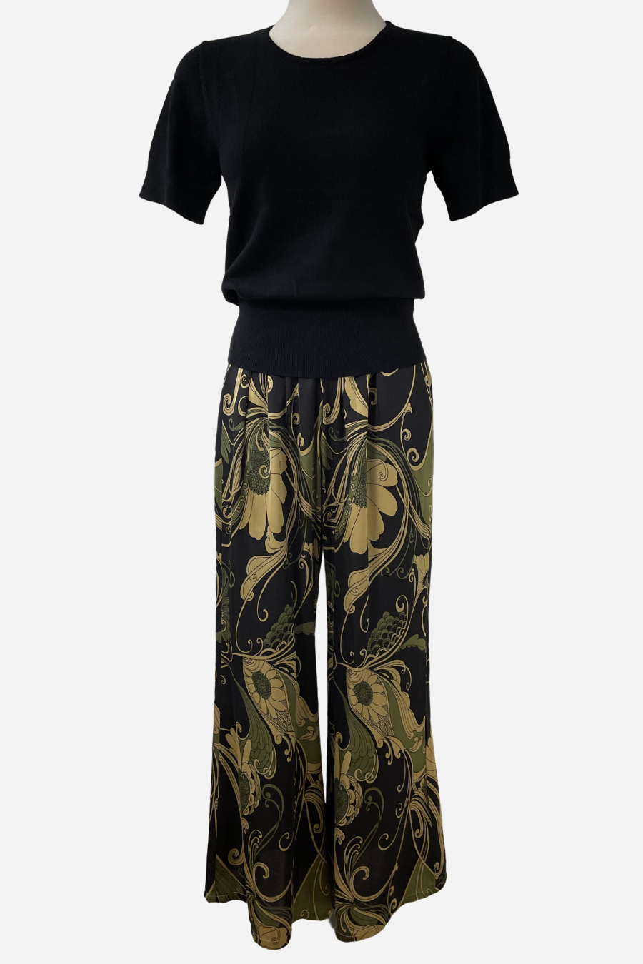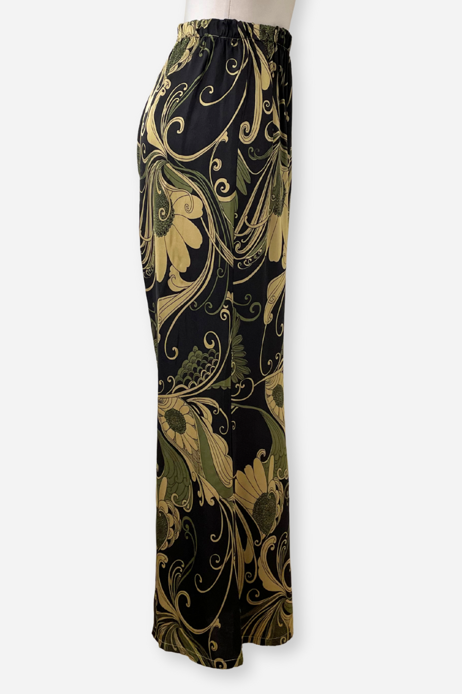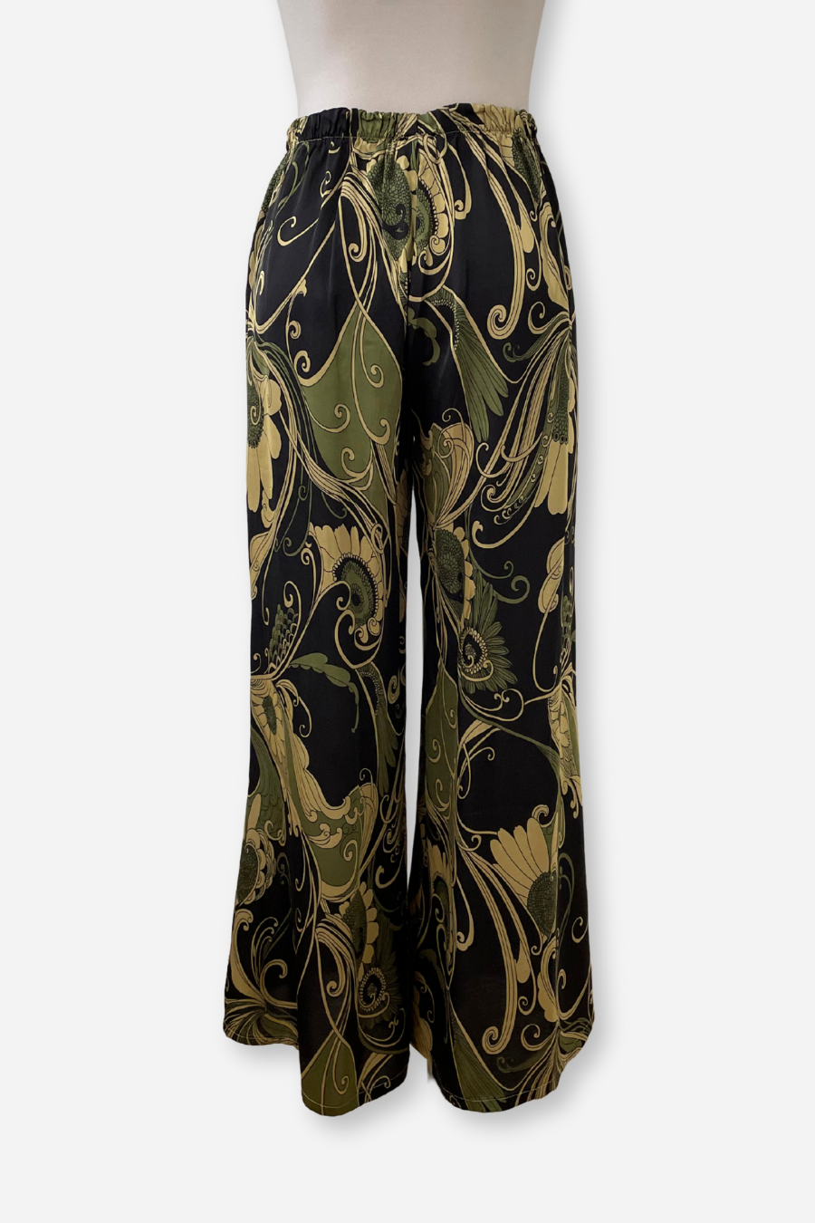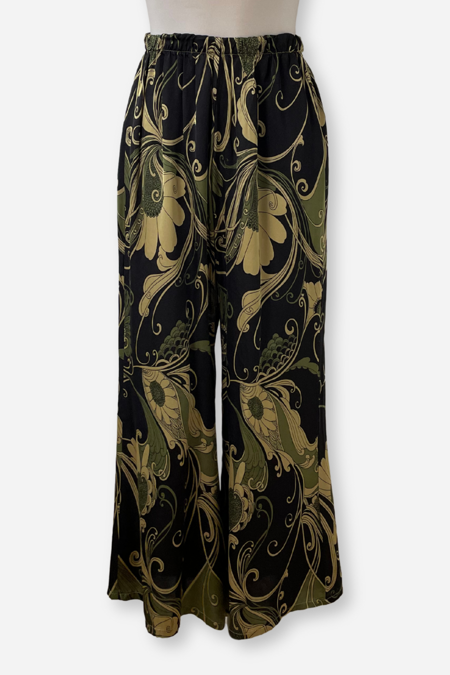 A classic and beautiful wide leg pant. In true Bryn style, an elastic waist for comfort and easy, pull-on styling. A lovely paisley print that goes beautifully with the black, natural linen, or olive greens!