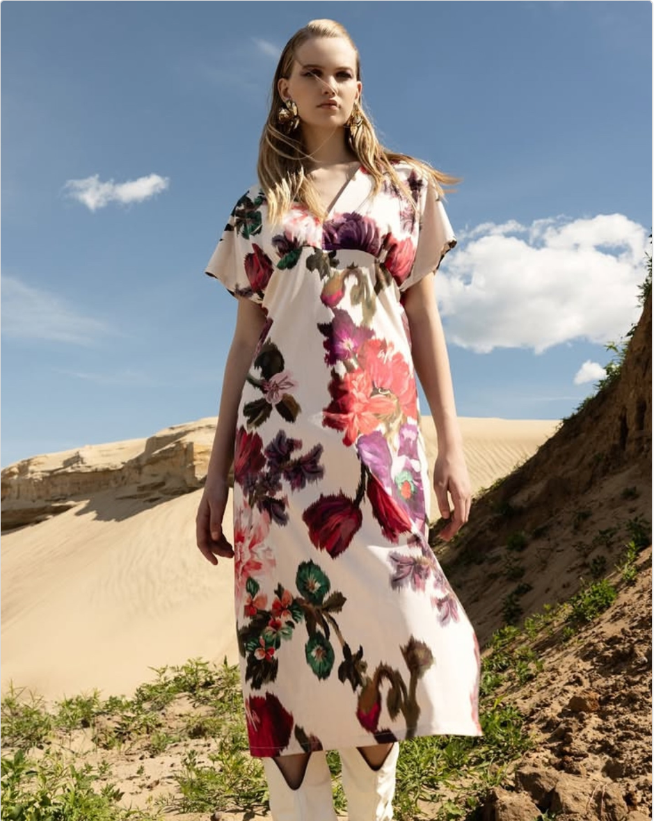 Introducing PASSION, a romantic and graceful dress that captures the essence of femininity through floral artistry.