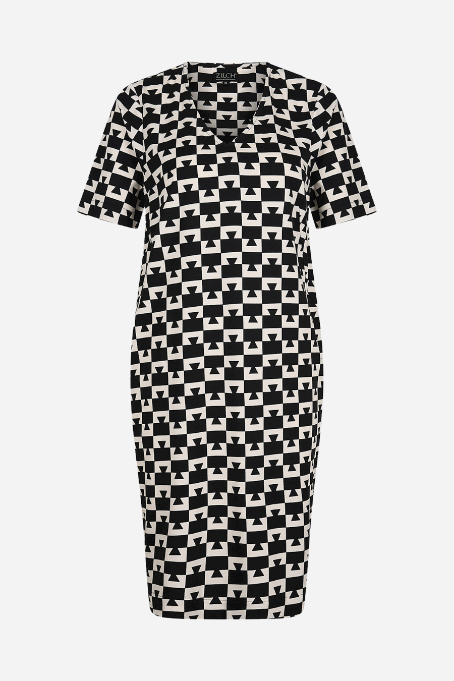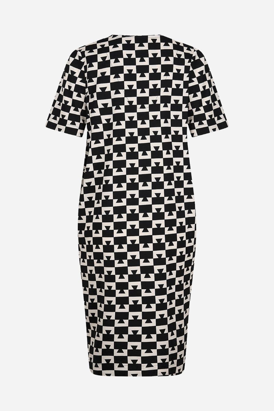 Summer dress with loose fit, short sleeves, v-neck and pockets. This dress is made of woven viscose with a light stretch