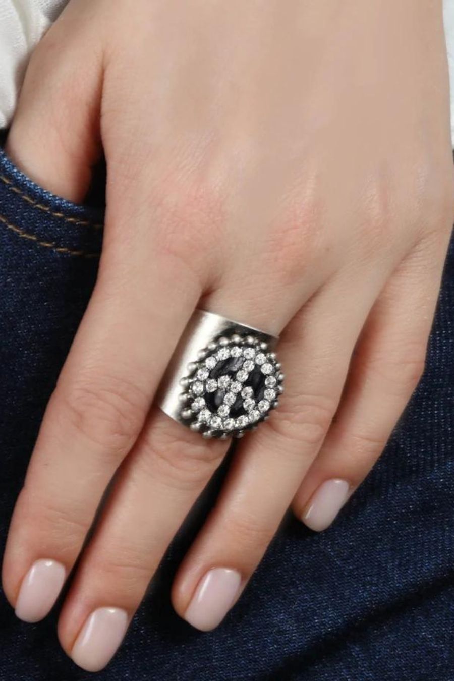 Say PEACE with this adjustable PEACE ring with Clear Swarovski crystals!