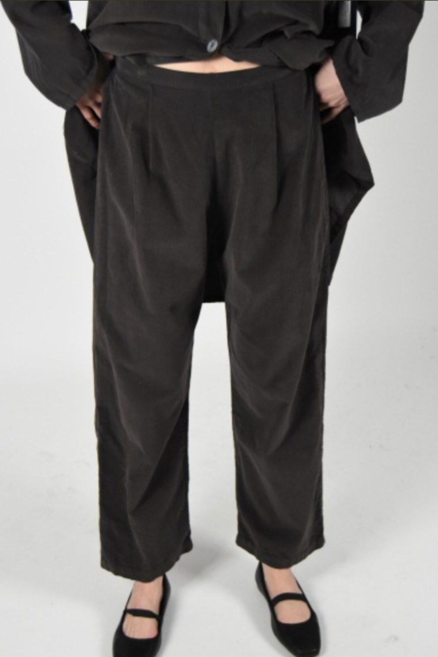 A soft cotton pull on pleated wide leg pant with side pockets (leg opening 10")