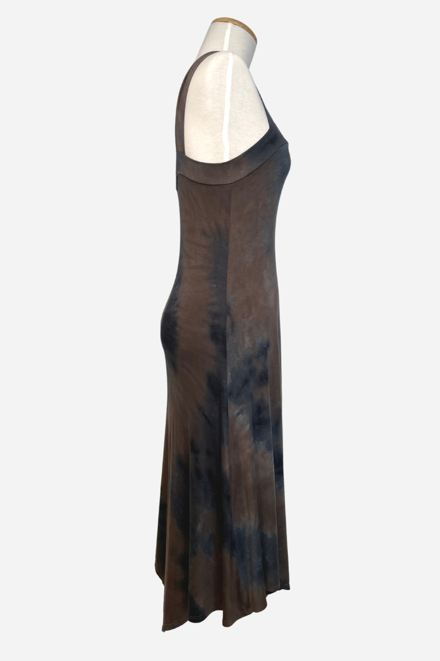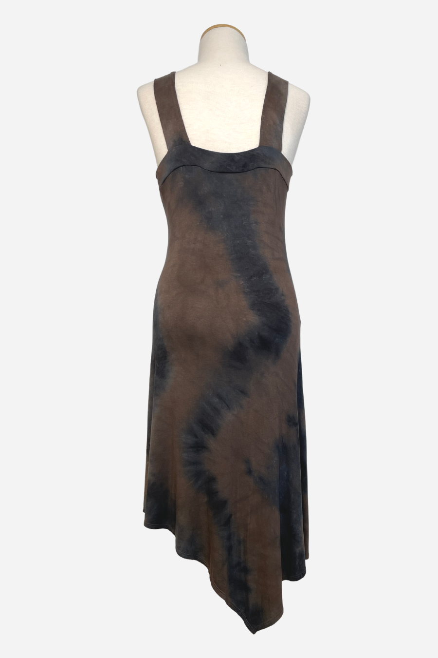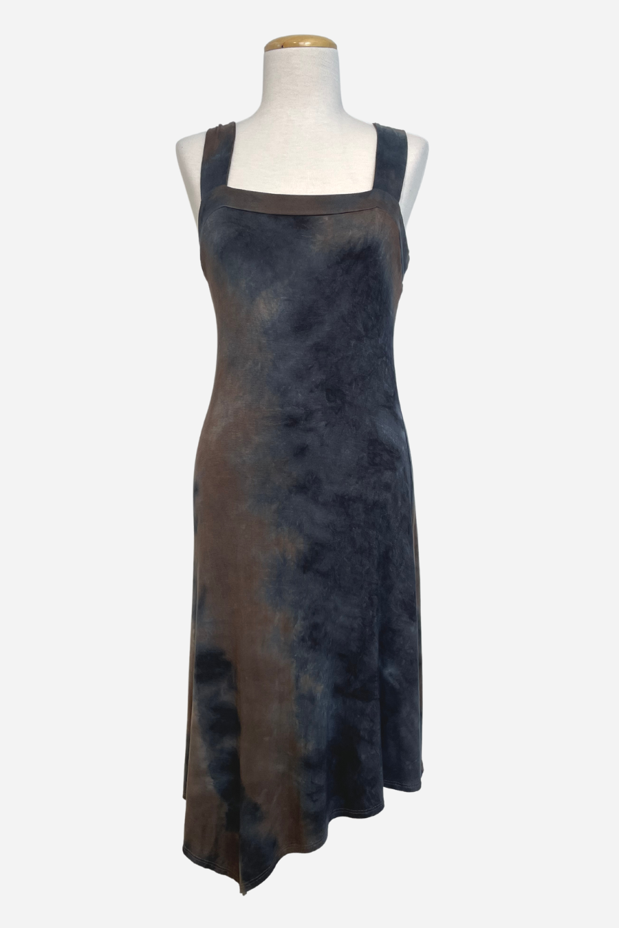 The Amaia Dress is made in very soft tie-dye jersey. It has wide straps, a square neckline and an asymmetrical hemline. Fitted.