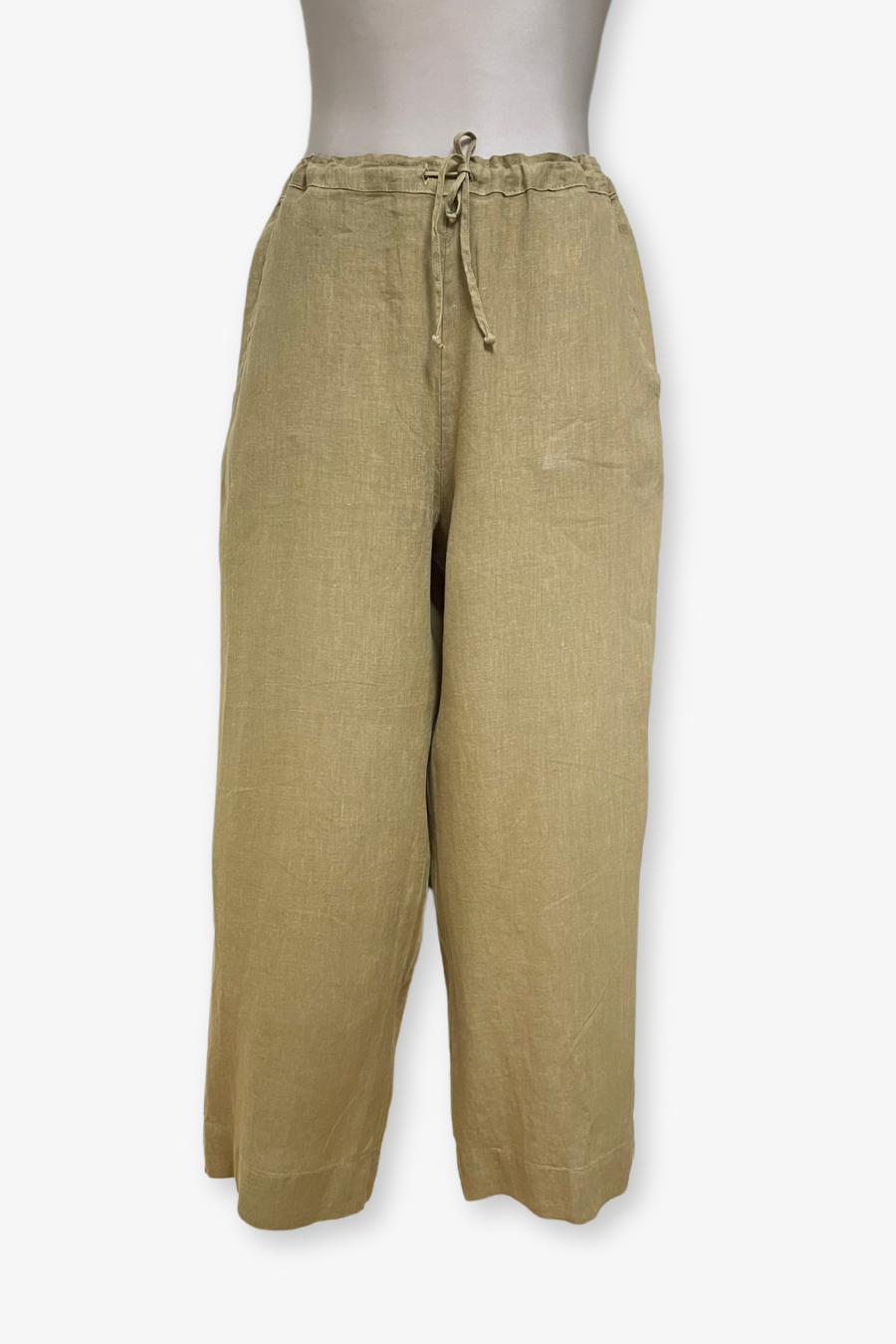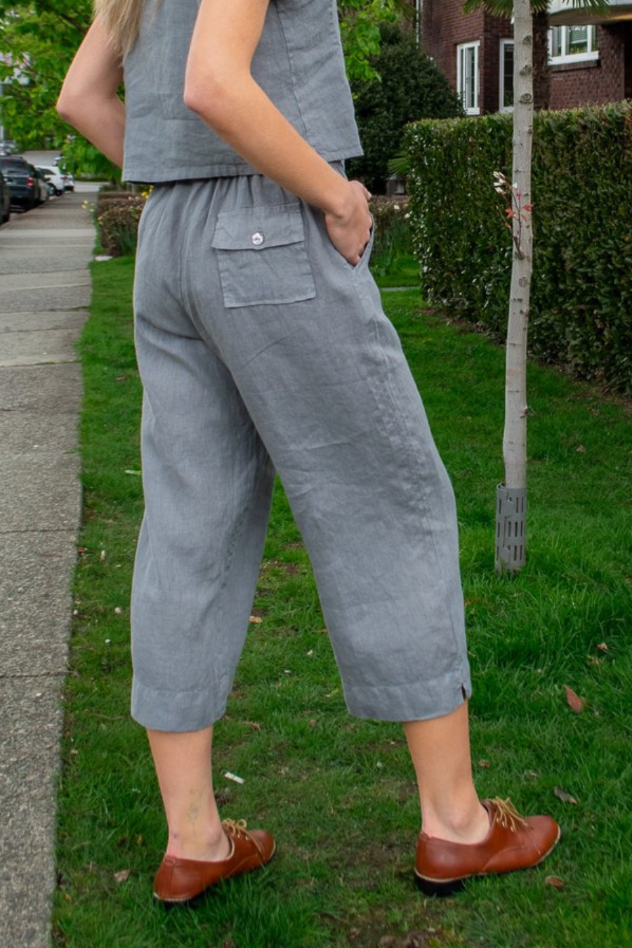 The Saba pant features a drawstring waist, crop length, and pockets! A lovely, comfortable crop pant, perfect for a summer day.