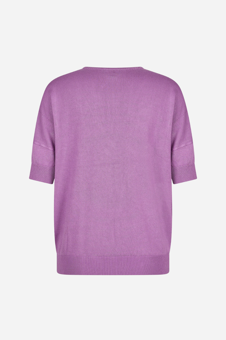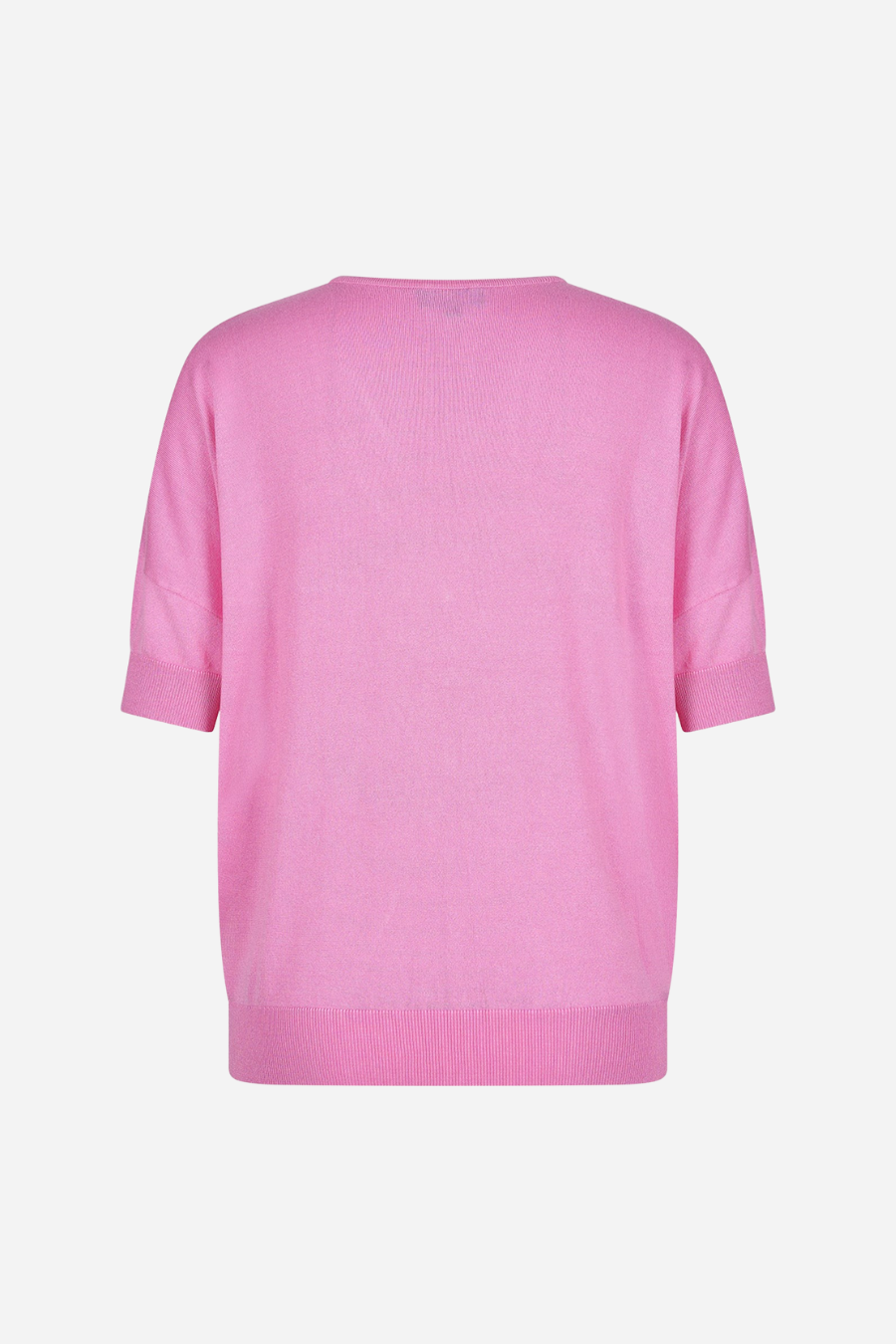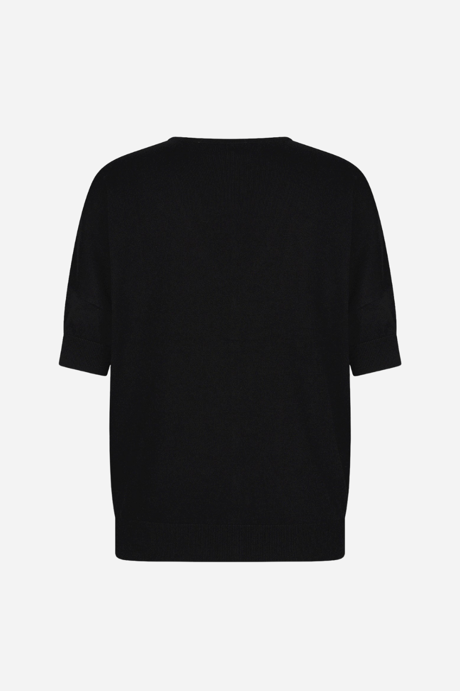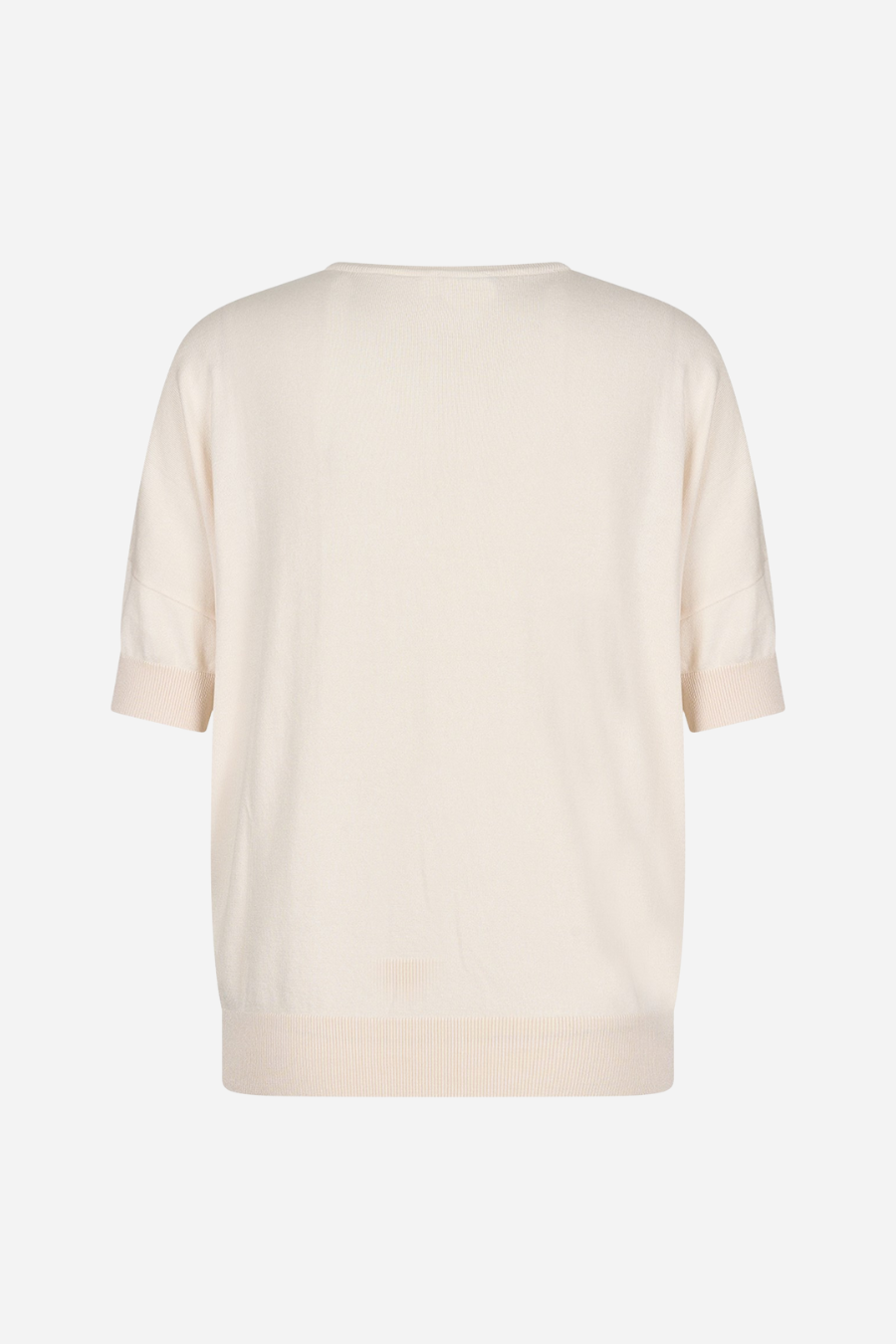 A slightly looser cardigan made of wonderfully soft bamboo with short sleeves with collar and dropped shoulder seam. This cardigan has a v-neck, a button closure