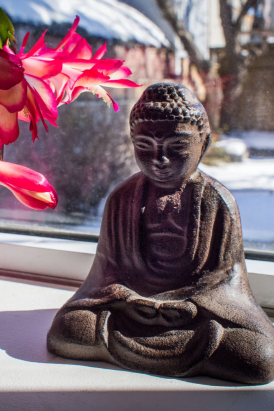 Enhance your meditative sanctuary by including this cast iron figurine of Buddha.
