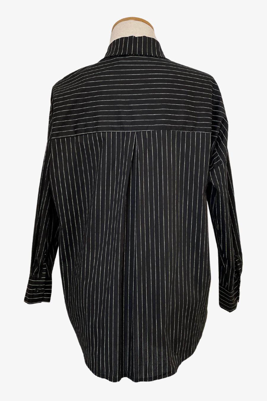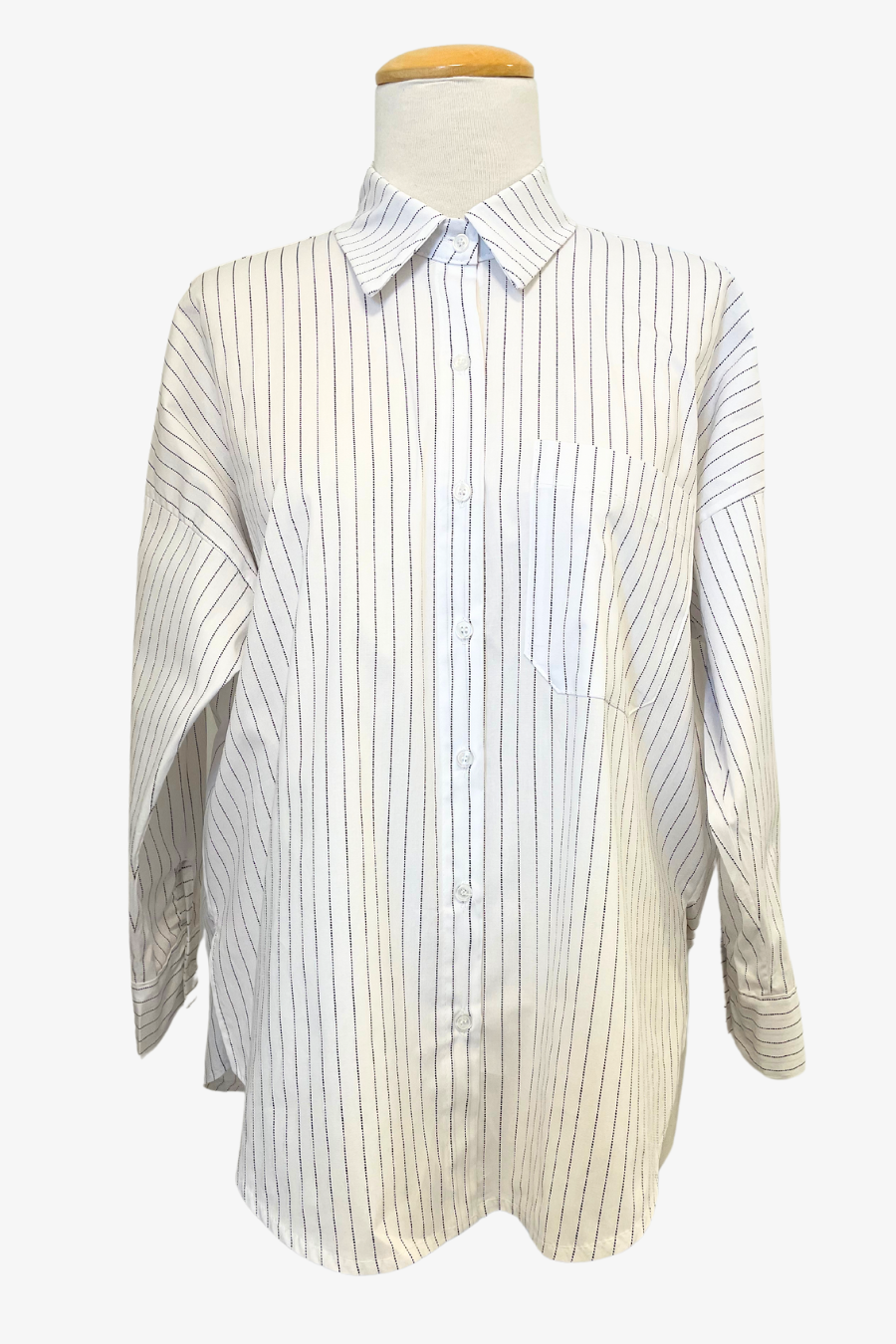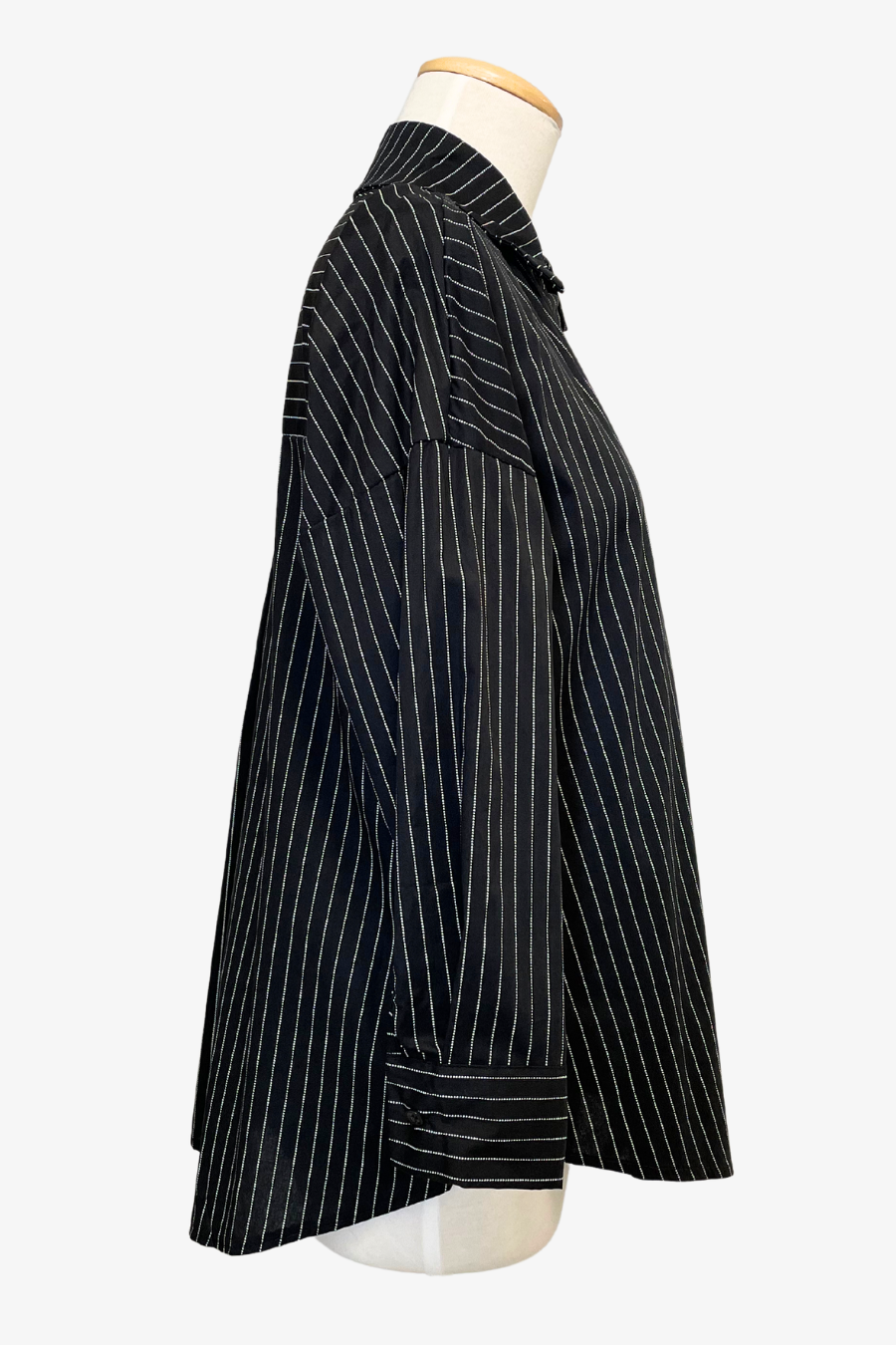 Relaxed boyfriend style shirt. Slight drop shoulder, curved hem, left chest pocket.