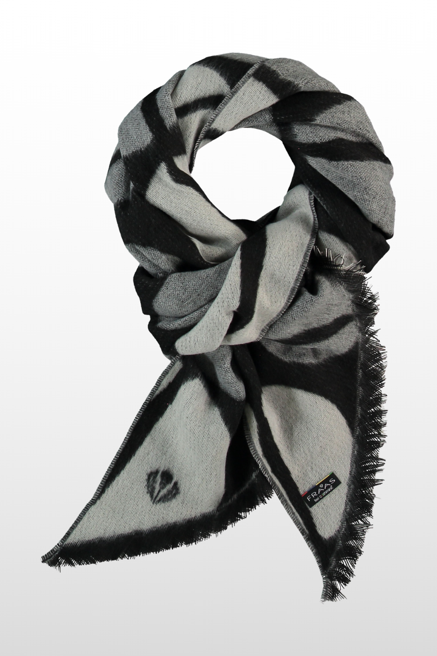 FASHIONABLY SUSTAINABLE! Try this fun reversible graphic scarf as a casual loop around your neck, tucked in like an infinity-scarf, or as a trendy pashmina for extra warmth draped over your shoulders to show the pattern. Made in Germany, this is a winter accessory to update for your outdoor outfit with the fashionable diagonal cut fringe. The fibres woven in this scarf are reclaimed from recycled plastic bottles and brushed to perfection making it cozy, warm, and environmentally friendly. As of Fall 2021, FRAAS is pledging to offset the small, yet unavoidable, emissions of all Sustainability Edition accessories through an international climate protection project with Climate Partner. Good for you. Good for the Planet!