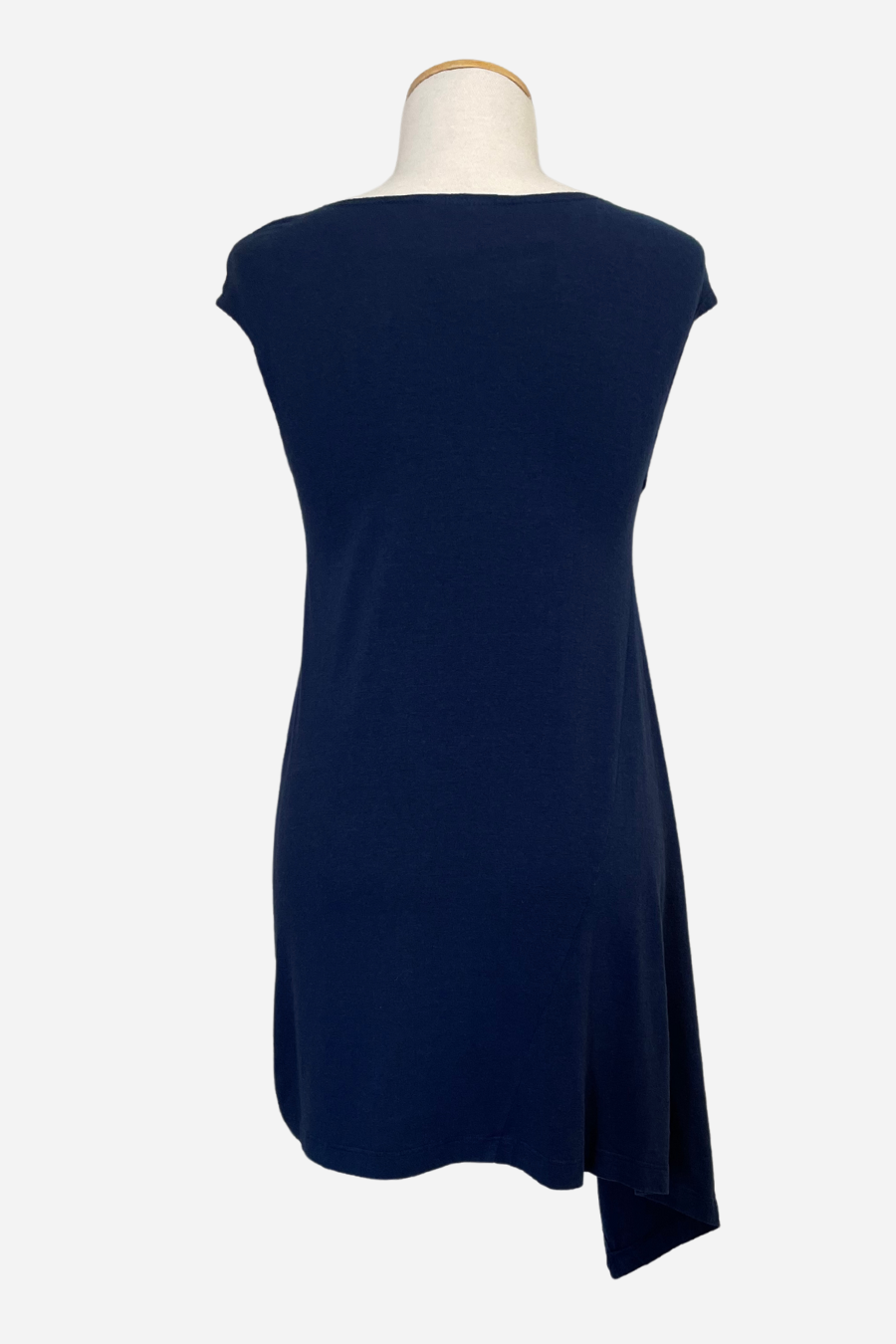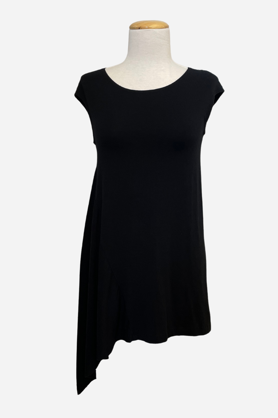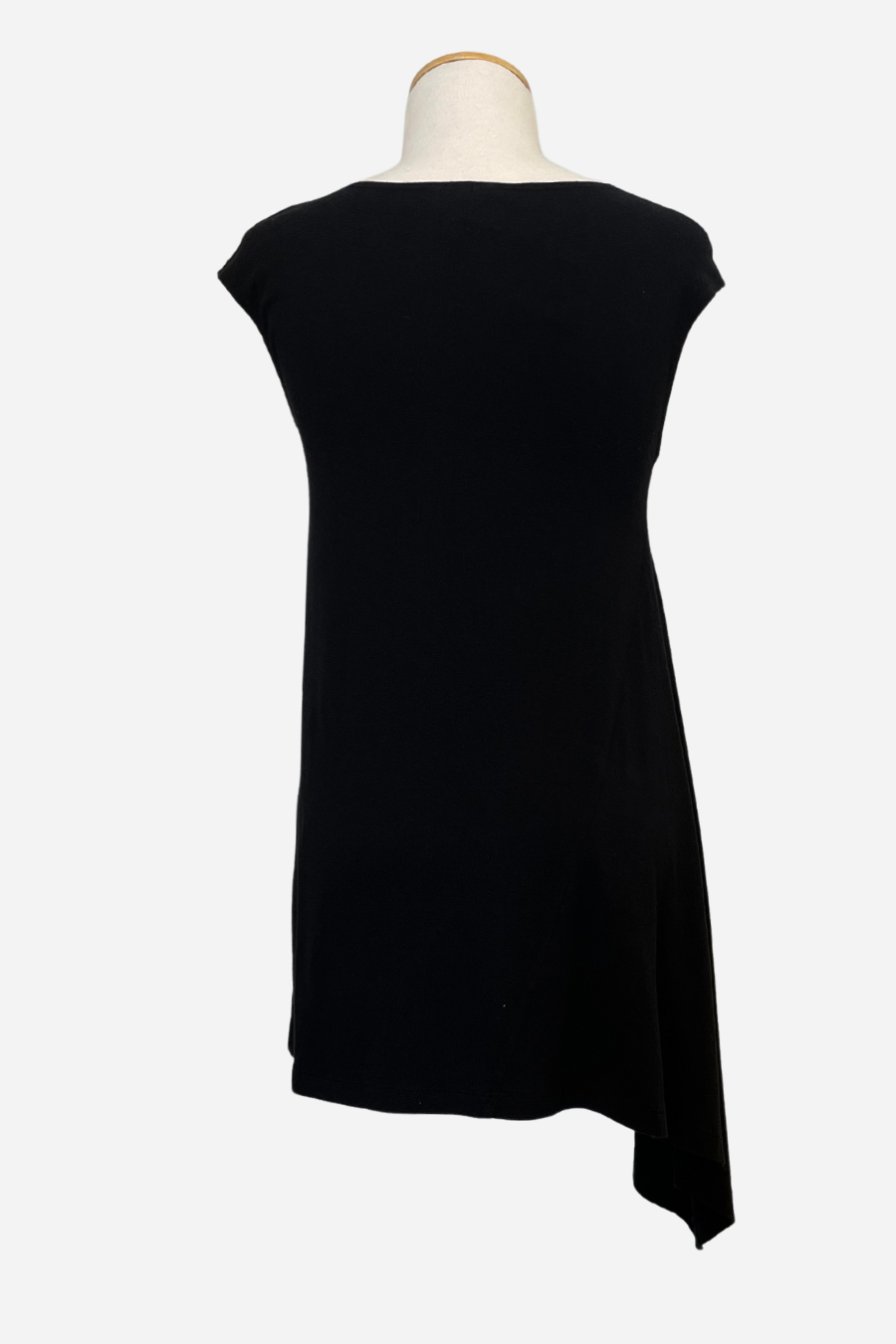 The Sway Tunic derives its name from the design detail reflecting one side as longer than the other. The fabric drapes to a point on one side of the garment creating an elegant feel.