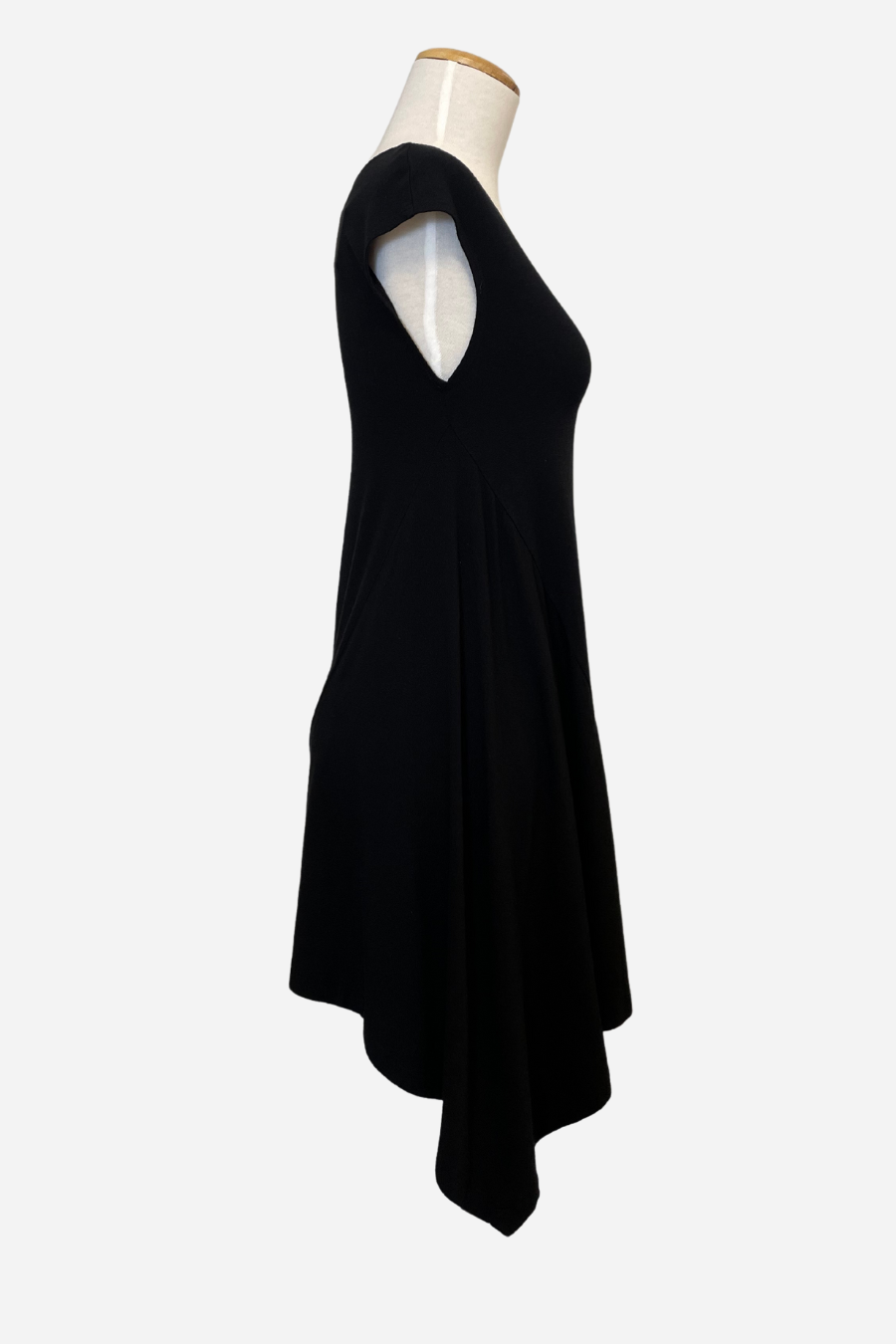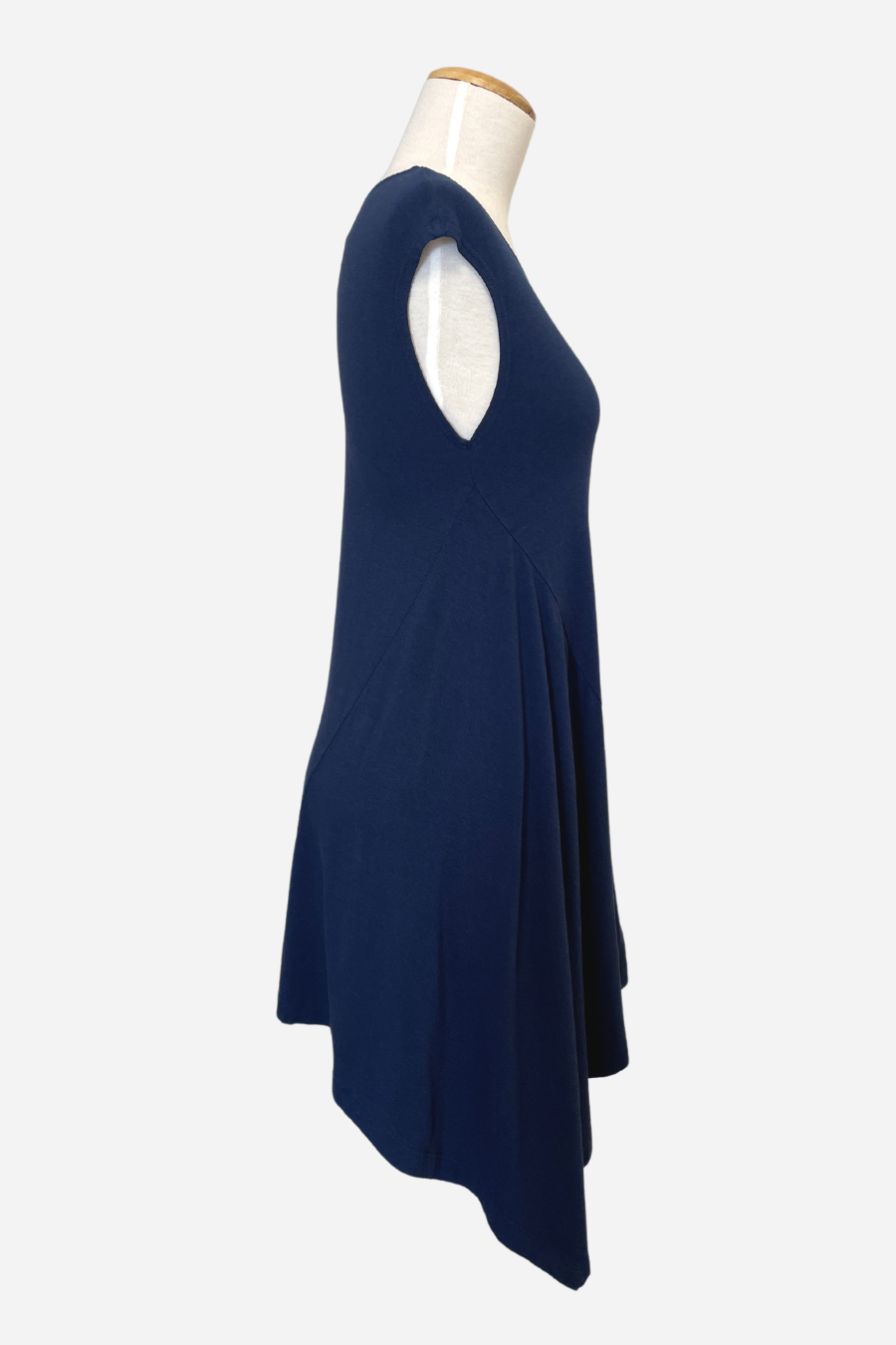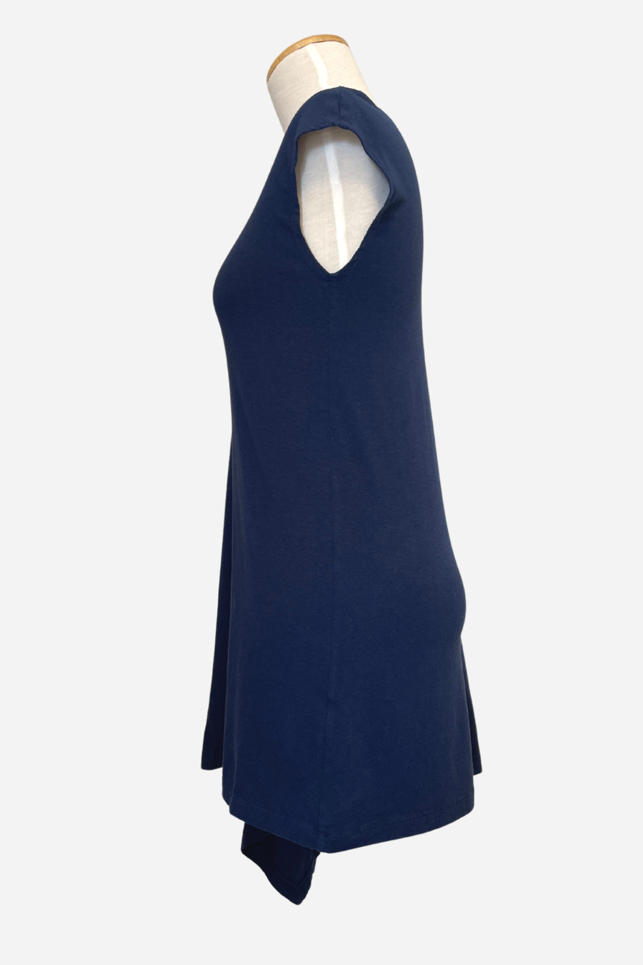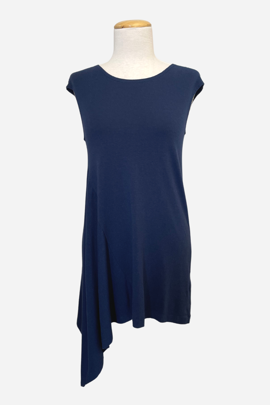 The Sway Tunic derives its name from the design detail reflecting one side as longer than the other. The fabric drapes to a point on one side of the garment creating an elegant feel.