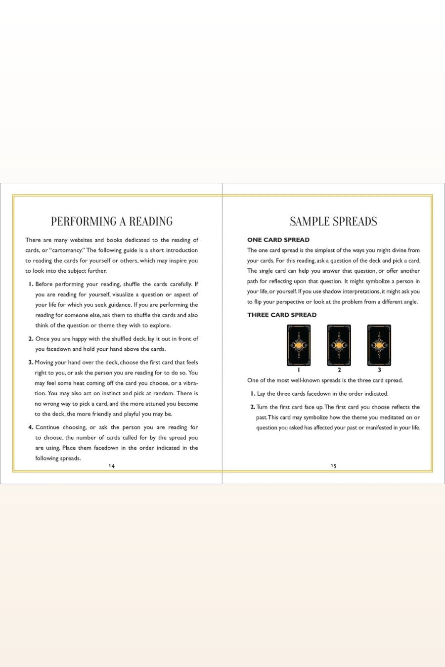 50-card deck comes with an accompanying 128-page book that offers beginner-friendly instruction in reading oracle cards, and explains each card's meaning.